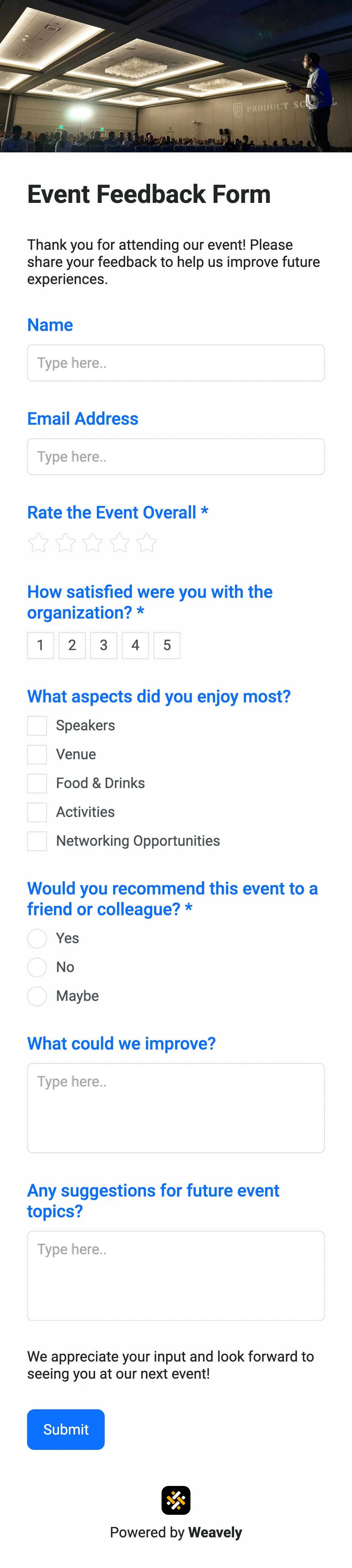 Use this free template to seamlessly collect feedback, analyze results, and boost event success.