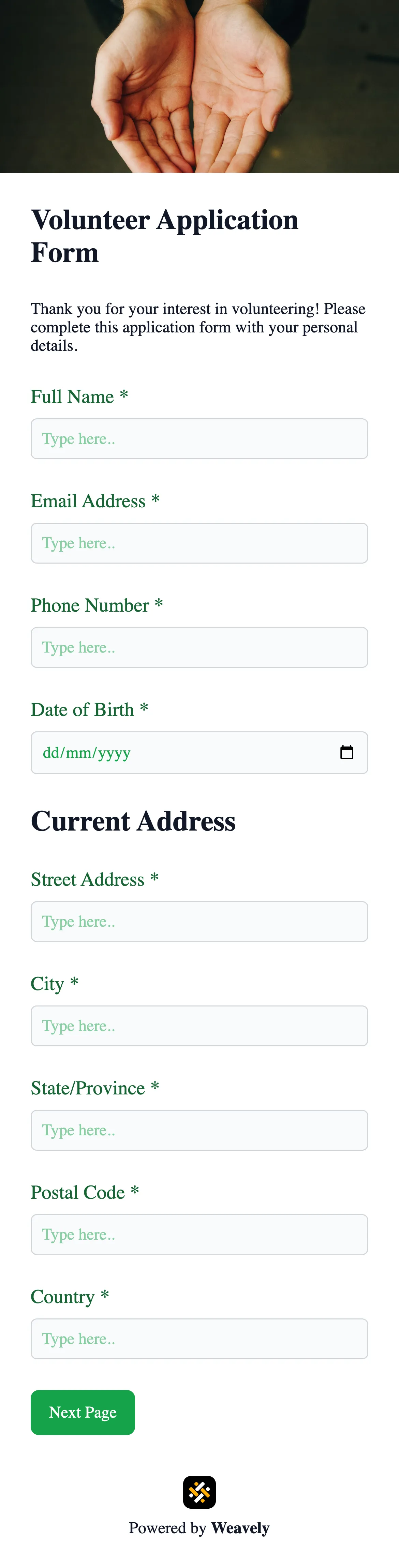 Volunteer application form template